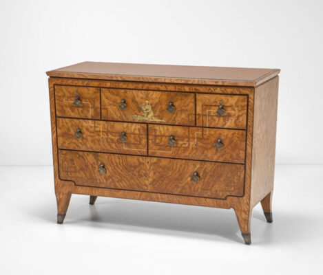 Under Ponti’s direction, the Paolo Lietti workshop executed a range of pieces—from sumptuous wardrobes and dressers in walnut to elegantly proportioned cabinets—often in collaboration with other artisans like Luigi Brusotti for details such as mirrors and bronze fittings. These early works reflect a transitional moment in Italian design: they are rooted in fine craftsmanship yet point toward a modern aesthetic that would come to define Italian design in the decades to follow.
