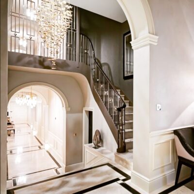 Hill House Interiors have completed a stunning and sympathetic renovation of this Grade II listed home just moments from South Kensington’s Royal Albert Hall. The redesign of this six bedroom home in Albert Court included an entirely new layout whilst restoring the classical cornicing, panelling and mouldings throughout to maintain its beautiful period style. Combining elements of Art Deco glamour with the property’s period features and the newly-designed and well-considered layout, Albert Court is a wonderful example of a contemporary family home.